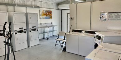 Lakelands state of the art "app" operated laundry room boasts commercial sized washers and dryers, clean epoxy floors, treadmill, plenty of table space, public restrooms, a TV. The machines will even text you when your loads are finished.