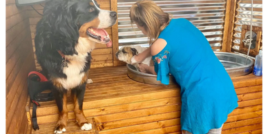 Pet lovers enjoy our semi-open air dog wash facility with stainless tub, bead board and concrete finish out. An outdoor shower, elevated tub, blow dryer fan and multiple lead hooks are available.